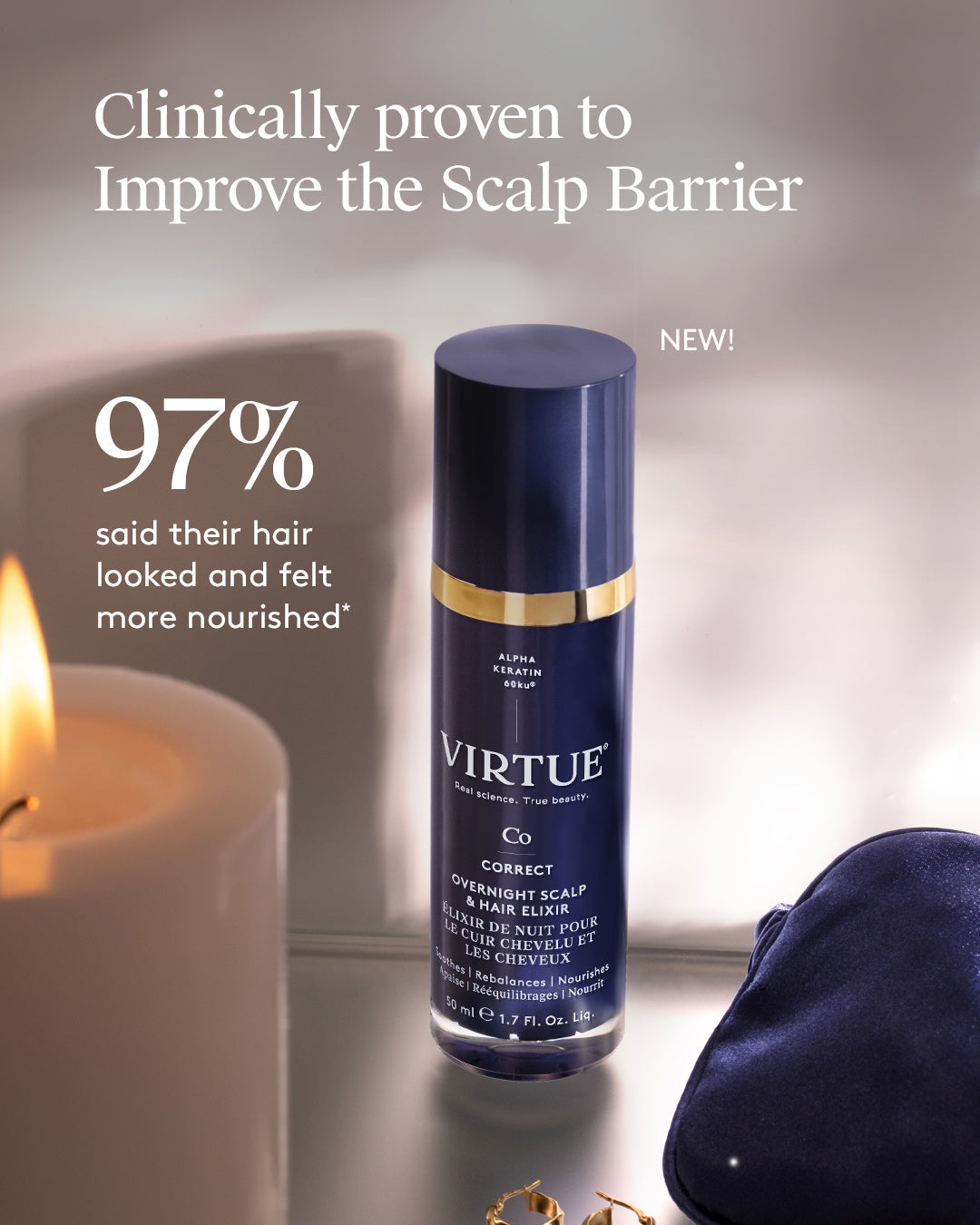 Virtue® Overnight Scalp & Hair Elixir is a transformative nightly leave-in serum that restores and revitalizes the scalp barrier and hair health while you sleep, because true luminosity starts at the roots. Like skincare for your scalp, this nightly nutrient-rich serum unlocks healthier hair growth by revitalizing the scalp barrier, while restoring hair’s softness and shine by morning. Heal while you dream.